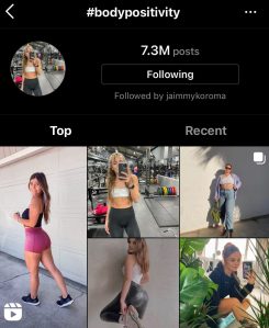 If you look up #bodypositivity on Instagram, this is a typical example of what you’ll see at the top of the hashtag: